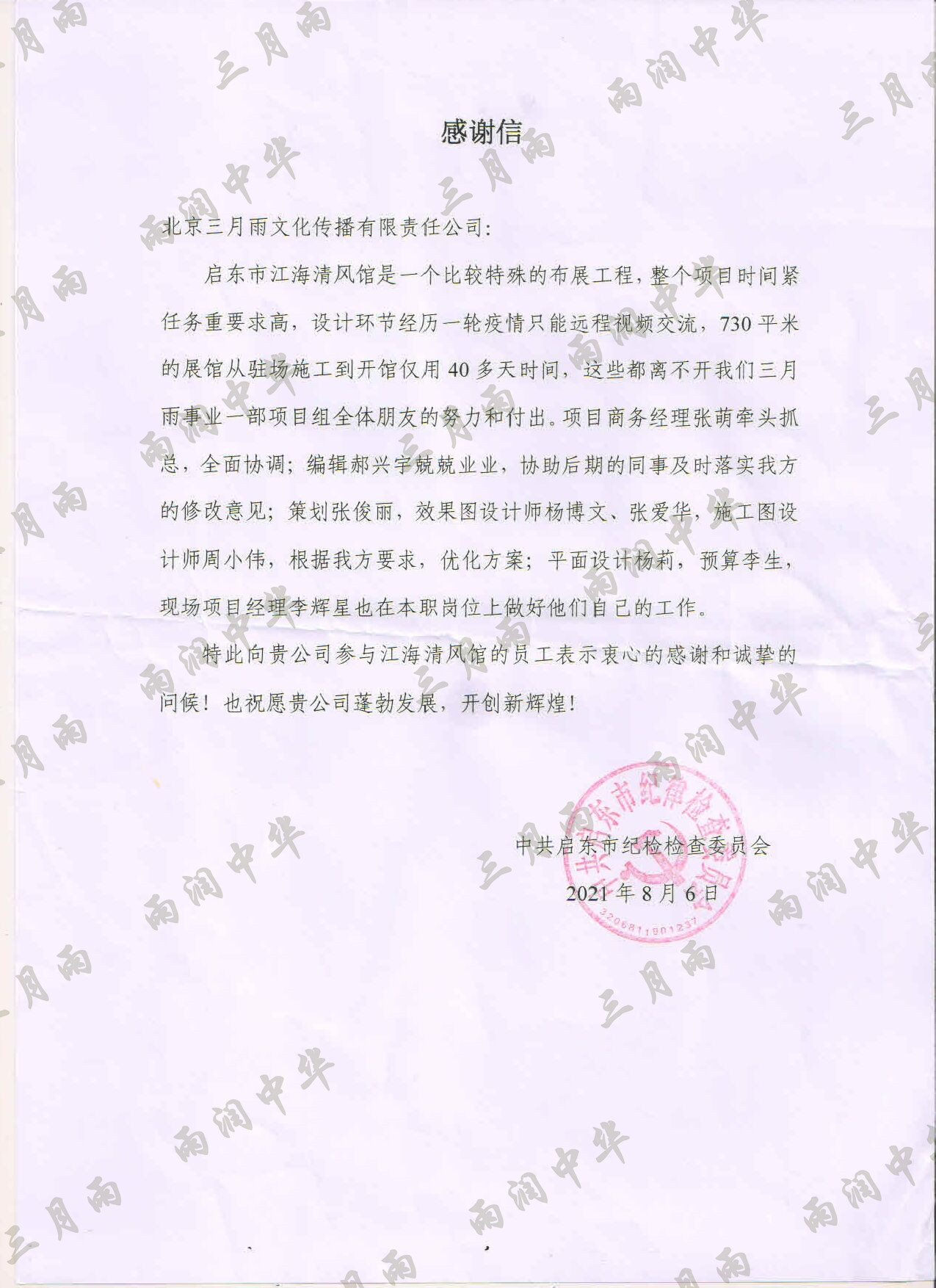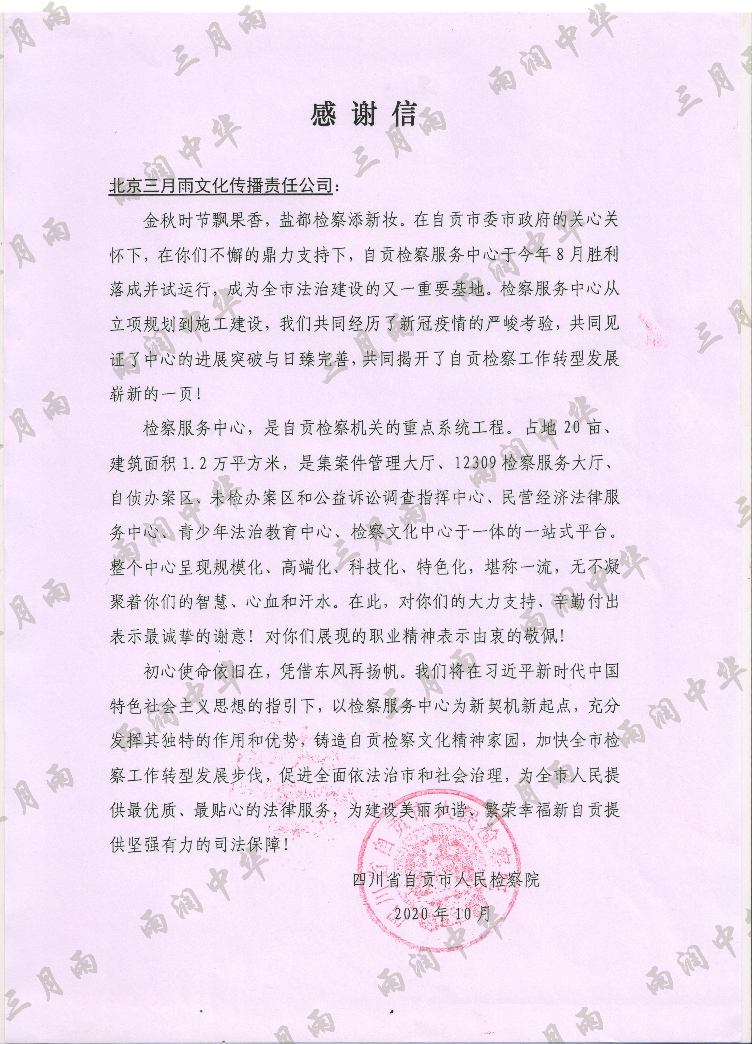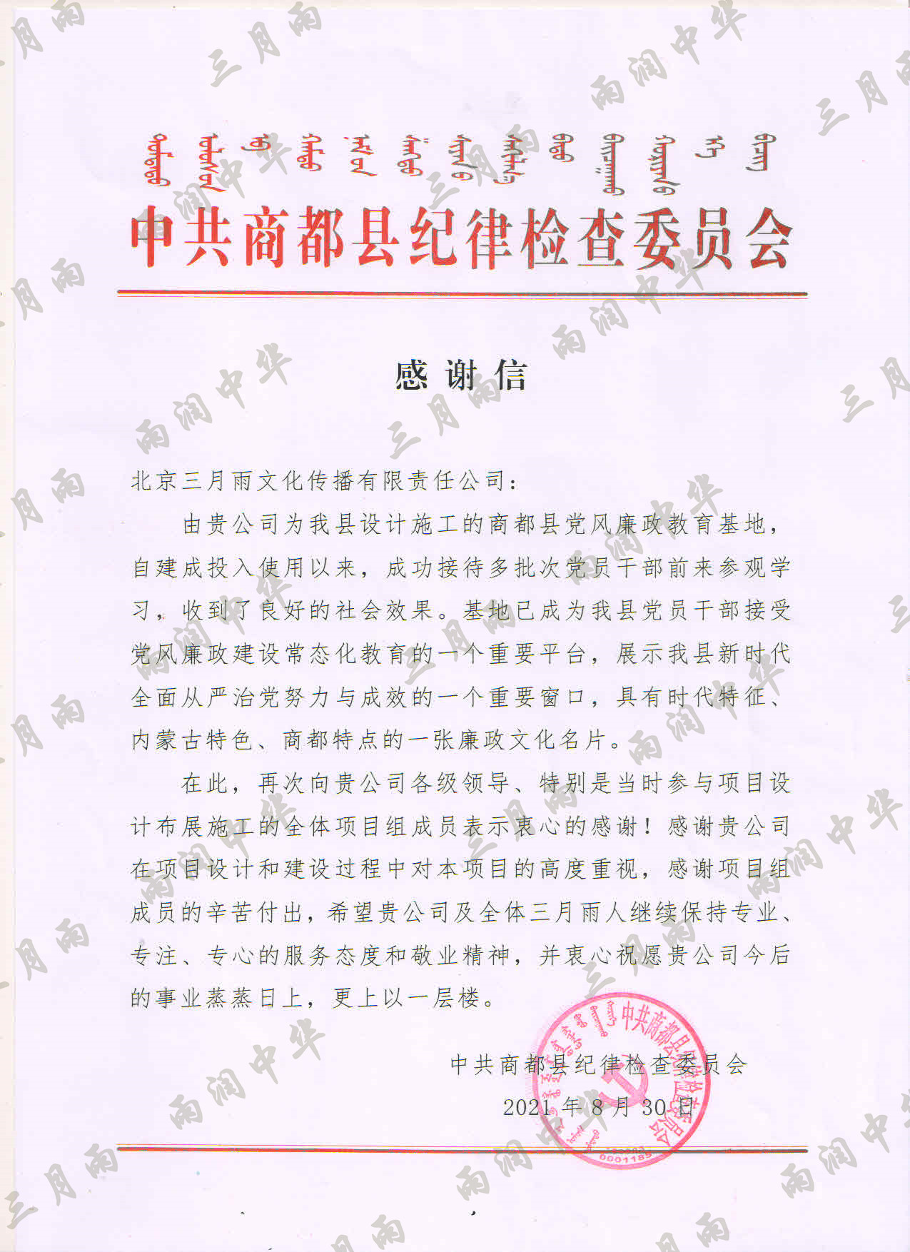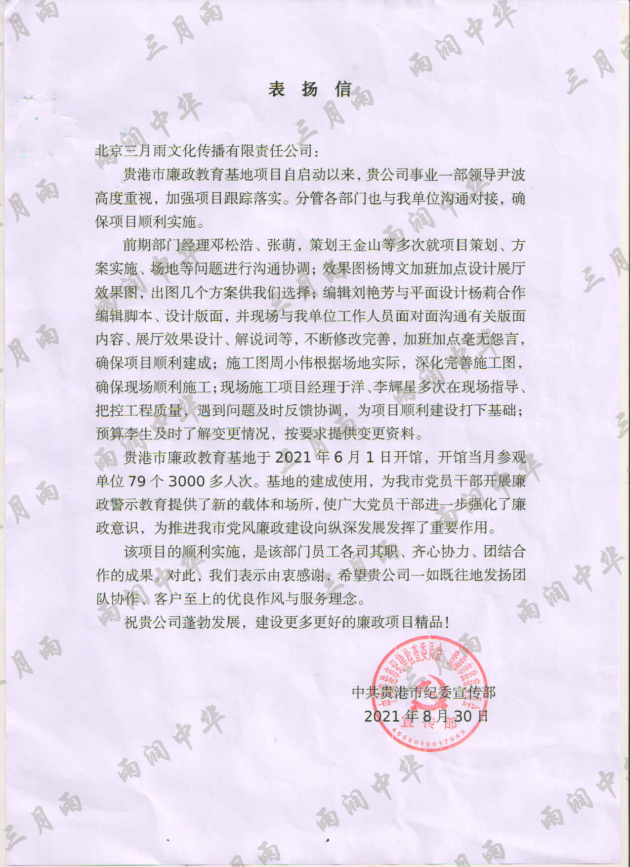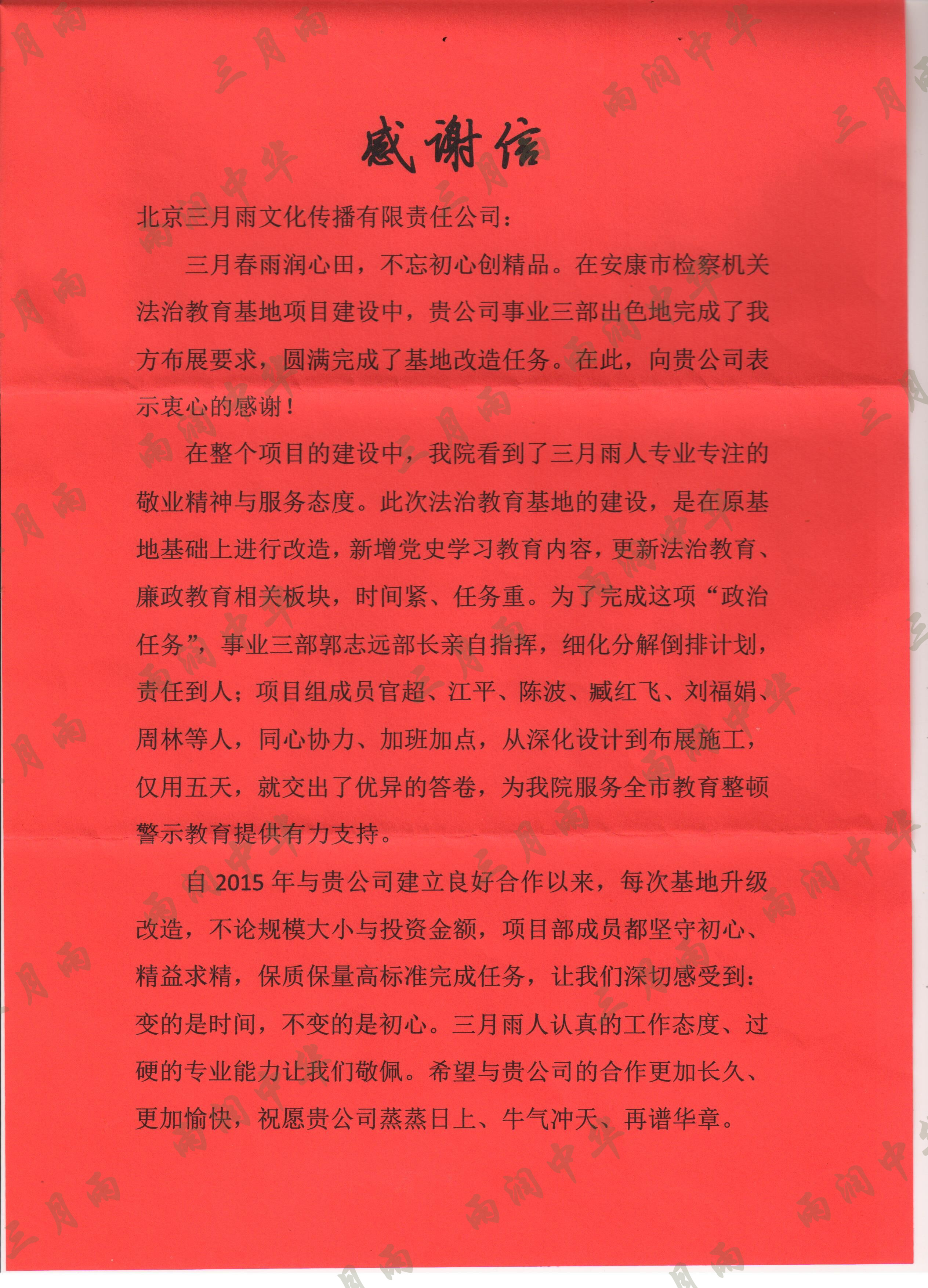 以质量求生存,以信誉求发展。公司既要“金杯”“银杯”,更要客户的口碑。每一个项目务求特色第一、质量第一、信誉第一,让客户满意。截至目前,共收到全国人大常委会机关纪委等国家机关和省、市、县级客户表扬信(感谢信)近