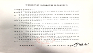 今年6月初,为了进一步推进落实我国建筑装饰企业及产业链上下游企业质量主体责任,大力提升质量品牌水平,中国建筑装饰协会主办的“中国建筑装饰品牌计划”——“质量信誉服务承诺”活动正式启动。三月雨集团总裁李迎玉在承诺书上郑重签字,公开承诺今后将在追求质量进步、恪守质量承诺方面接受全社会监督。