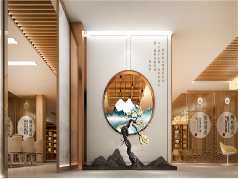 该项目位于黄梅县人民检察院内,设计上以王维《鸟鸣涧》为创意来源,并结合“灵润黄梅”的特点,命名为“鸣涧书屋”。