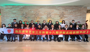 三月雨公司主办的“传承文化的力量”主题讲解员培训班为期五天,吸引了来自颐和园、北京航空航天大学校史馆、中共河北省党校、滁州市纪委等23家单位共计33名学员参加培训。本期培训班在延续《用初心凝聚使命—新时期新青年的历史担当》、《从胜利走向胜利》等核心课程之外,还新增加了“朋朋哥哥”的《让讲解更有力量》和刘萍老师的《讲解员展厅模拟演练》两门课程,使课程体系更加完善,《中国传统文化雅集》、《国家级博物馆参观》、《综合艺术欣赏》作为必选活动,依旧深受学员喜爱。