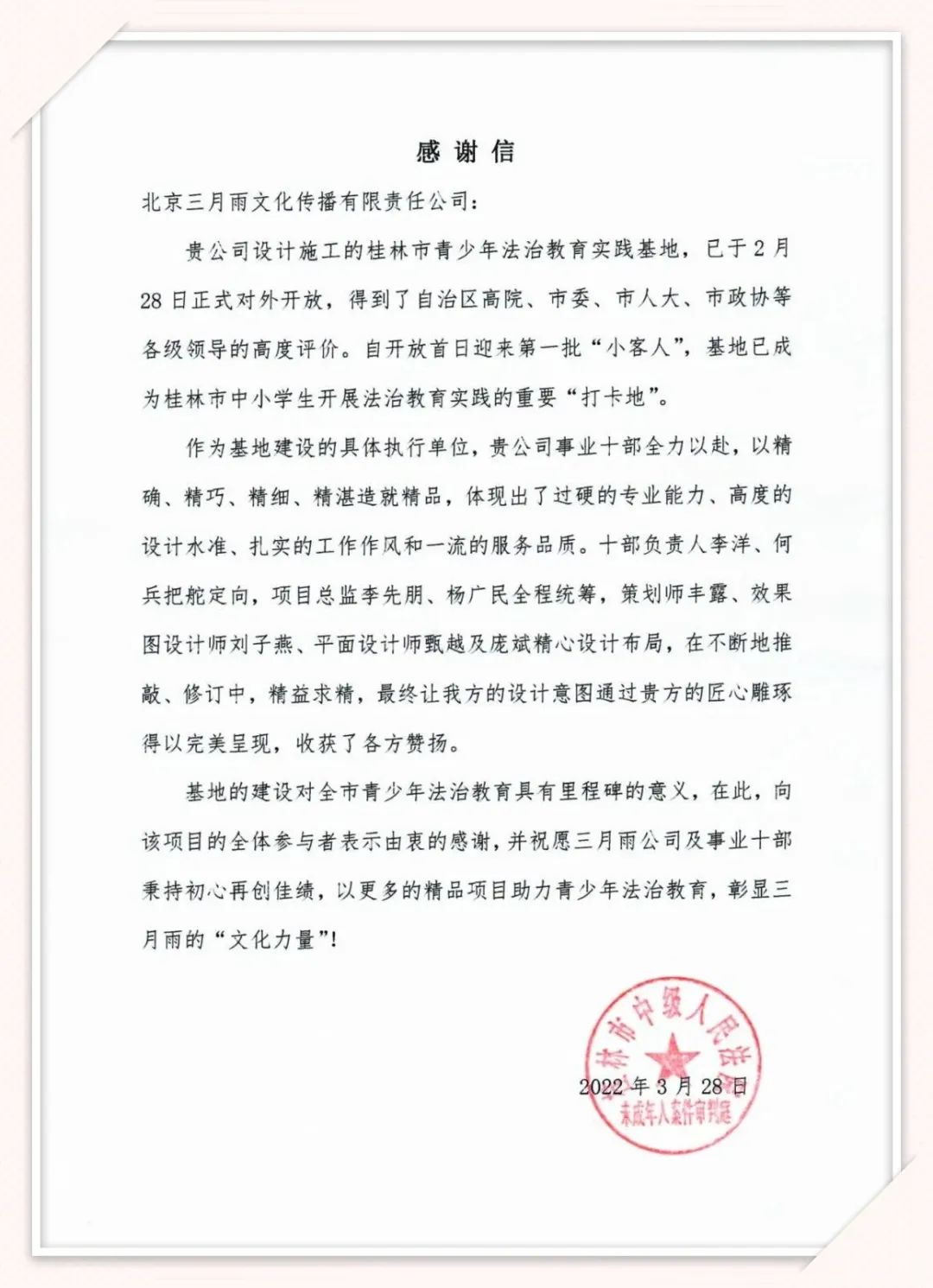 ▲ 4月2日,收到来自桂林市中级人民法院的感谢信