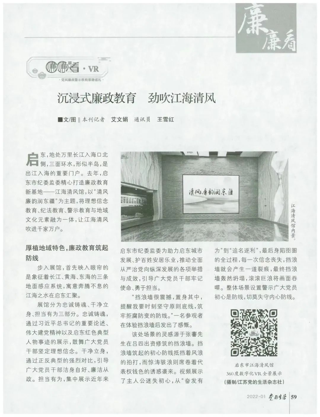 《党的生活》杂志报道由三月雨协助建设的“江海清风馆”