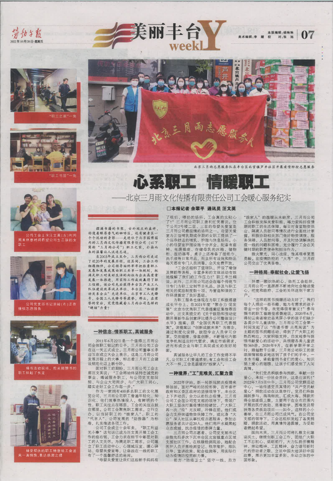 《劳动午报》整版报道“三月雨工会暖心服务纪实”