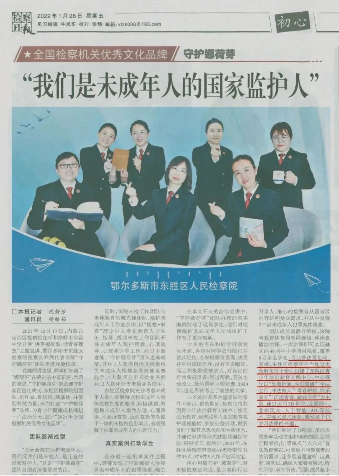 《检察日报》报道由三月雨协助建设的“鄂尔多斯东胜区青少年法治教育实践中心”