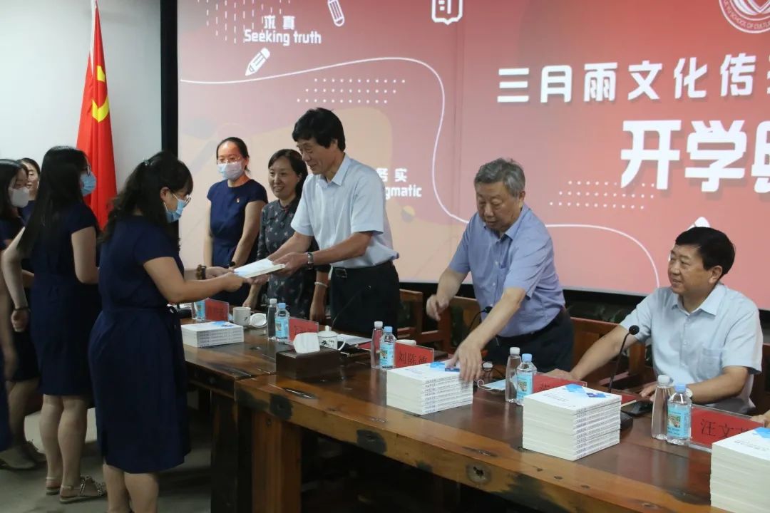 随后,学院名誉教授和集团领导共同为全体学员发放教材。在全体人员的大合影中,开学典礼圆满落幕。