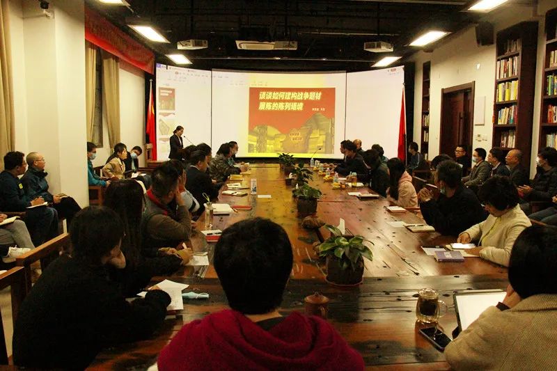 在本次培训中,李跃进老师主要结合国内外展陈设计中的优秀案例,就如何打建战争、军事、缅怀类题材展陈的“脊梁”、如何在展陈空间纵深上做到“敛放有致”,如何挖掘、运用具有时代追忆的造型元素等专业性极强的问题,进行了讲解和评析。