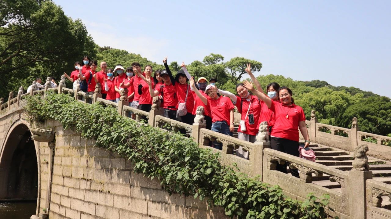 普陀山并不高,但身处此山,不知不觉中人的内心便多了几分虔诚,有道是“山不在高,有仙则灵”。队员们入乡随俗礼拜南海观音像、登顶佛顶山、驻足法雨寺、徒步千步金沙、寺前赏荷“接天莲叶无穷碧”,感受“南海圣境”沁人心脾的至善至美。息耒禅院离游客中心很近,虽并未开放,但因所在位置与特有的建筑魅力和历史文化,还是让众多游客流连忘返,打卡频频。