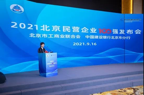 北京市政协副主席、市工商联主席燕瑛,中国建设银行总行党委副书记、监事长王永庆,市委统战部副部长、市工商联党组书记赵玉金出席会议并讲话。燕瑛在会上指出,北京民营企业百强调研与发布,对推动民营经济高质量发展,发挥了重要示范带动作用。