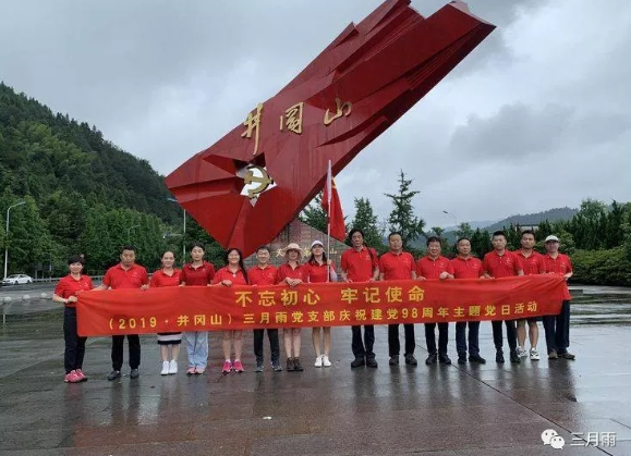 为庆祝建党98周年,进一步提升党员干部的党性修养,深切感悟中国共产党人“为中国人民谋幸福,为中华民族谋复兴”的初心和使命,2019年6月22日至23日,北京三月雨公司党员和部分登山队队员共16人在党支部书记涂微的带领下,奔赴井冈山革命根据地进行“不忘初心、牢记使命”主题教育活动。