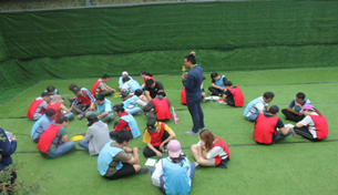 下午,在京螺山庄拓展基地,全体人员又分成“烈火队”(红队)和“神童队”(蓝队)两队进行激烈对抗赛。在三位专业教练的带领下,完成了“急速60秒”、“荆棘取水”“书写未来”等六个内容的比赛。两队队员激情高昂,争先恐后,密切协作,完成一个个高难动作,一次次将活动推向了高潮。